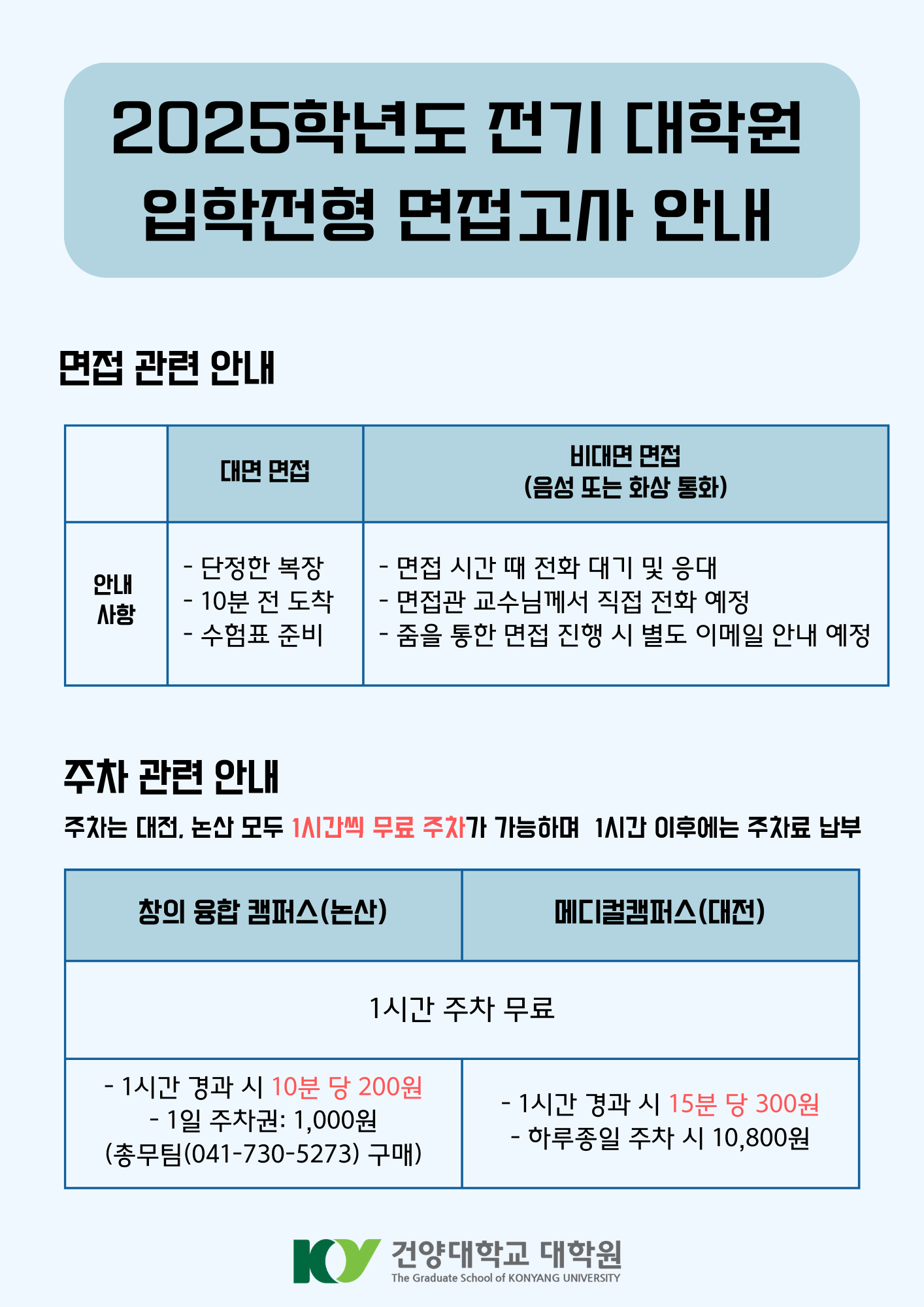 | 제목 | 2025학년도 전기 모집 관련 면접 안내 | ||||