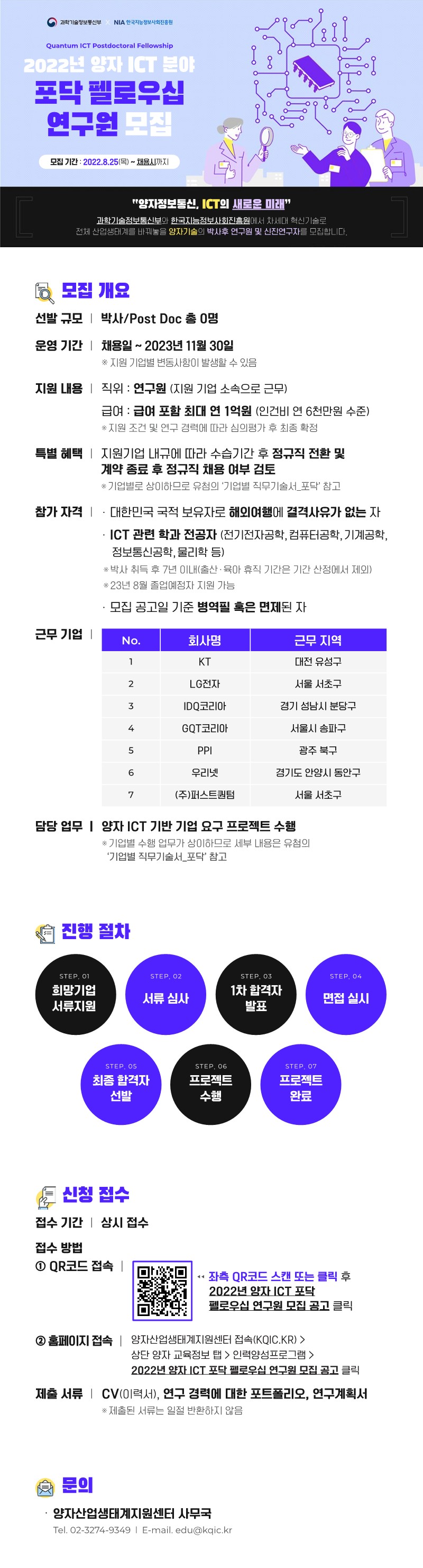 | 제목 | 2022년 양자 ICT 분야 포닥 펠로우십 연구원 모집 | ||||