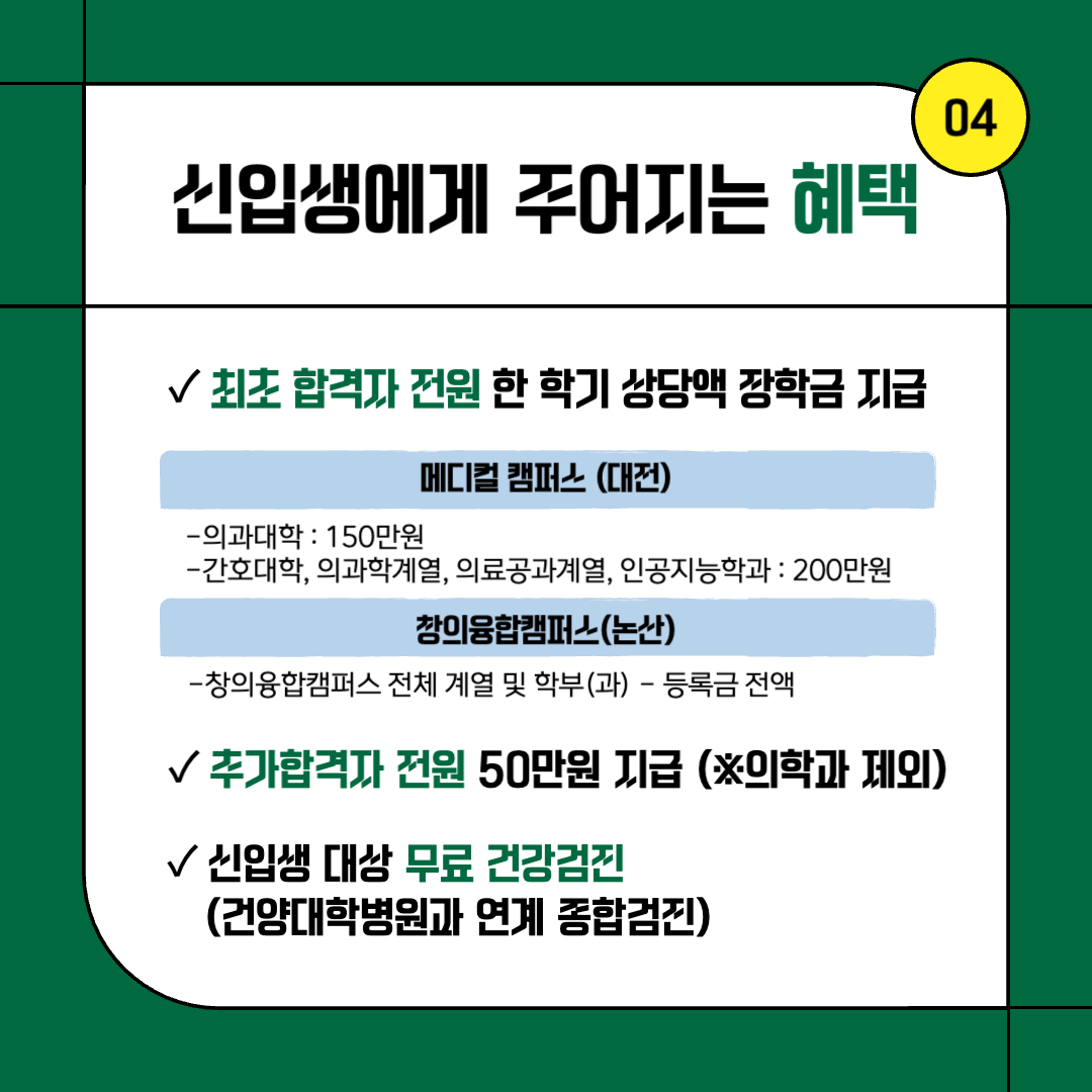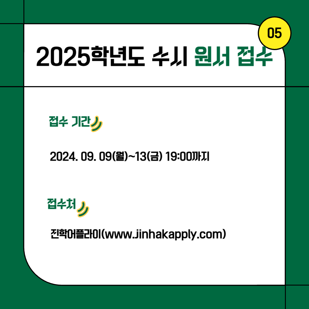 건양대학교 2025 수시모집도 많은 관심 부탁드립니다. - 접수기간 : 2024.09.09(월)~13(금) 19:00까지 - 접수처 : 진학어플라이(www.jinhakapply.com