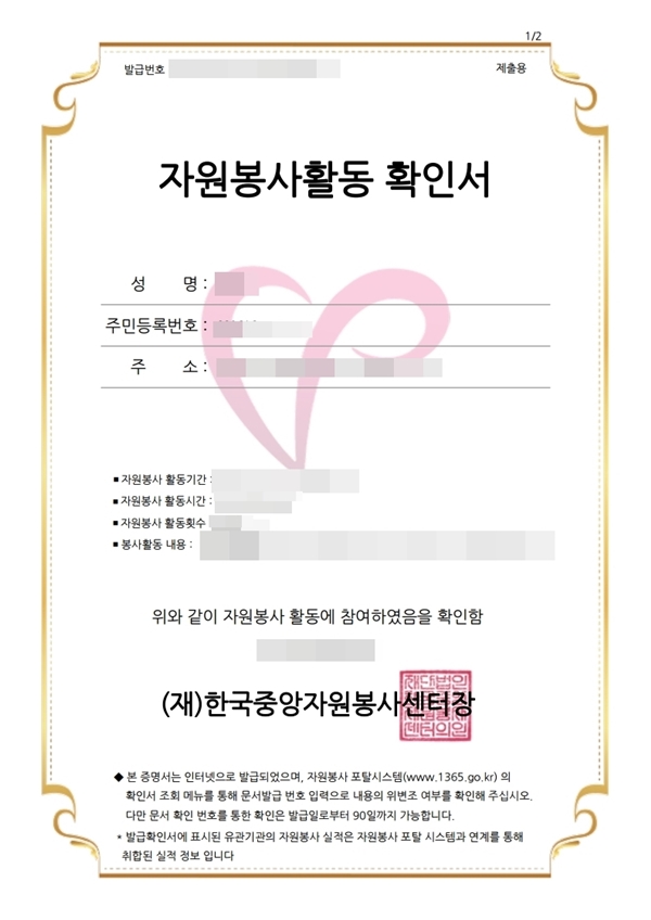- 확인서 발급 시 PDF 파일로 변환이 불가능하므로 가급적 1365등으로 실적 연계 후 업로드 - PC화면에서 카메라 촬영, 캡처도 인정하나 발급번호가 명확히 보여야함 - 통합정보시스템에 봉사기관을 '활동장소'로 입력