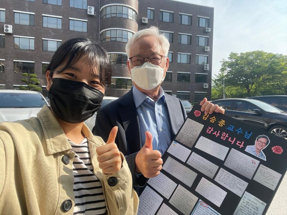 코로나19로 인해 학우 분들을 대표하여 학회장단이 교수님들께 편지를 전달 드렸습니다. 교수님들께서 편지를 기쁘게 받아주셔서 감사하고 보람 있는 이벤트가 되었습니다. 모든 학우님들의 진심이 교수님들께 잘 전달되었길 바랍니다. *모든 인원은 마스크를 착용하였으며 사진 촬영 시에만 잠시 마스크를 벗었음을 알려드립니다. |