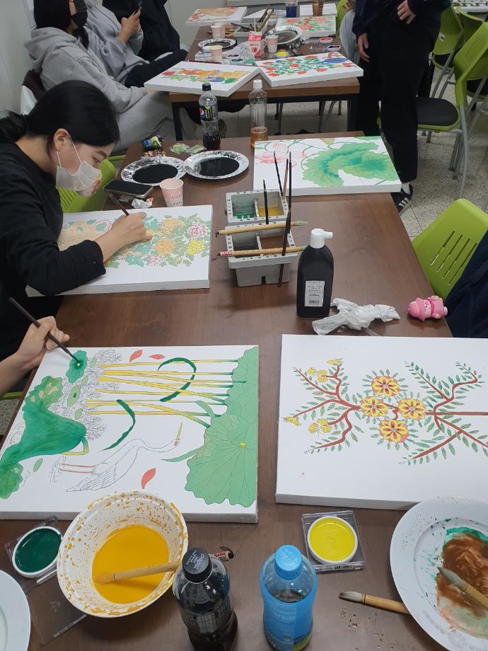 2022.11.15(화) ~ 2022.11.26(토) 예술상담치료사 자격 취득 프로그램을 진행하였습니다. 이번 프로그램은 동양화 미술치료, 음악치료, 사례연구: 중년여성 가족치료/노인-아동 미술치료, 이야기책 예술상담, 예술매체를 통한 집단상담이 진행되었습니다. 미술치료 및 음악치료 이론을 학습하고, 실습을 통해 예술상담치료사의 기본적인 역량을 키우는 시간을 가졌습니다. |