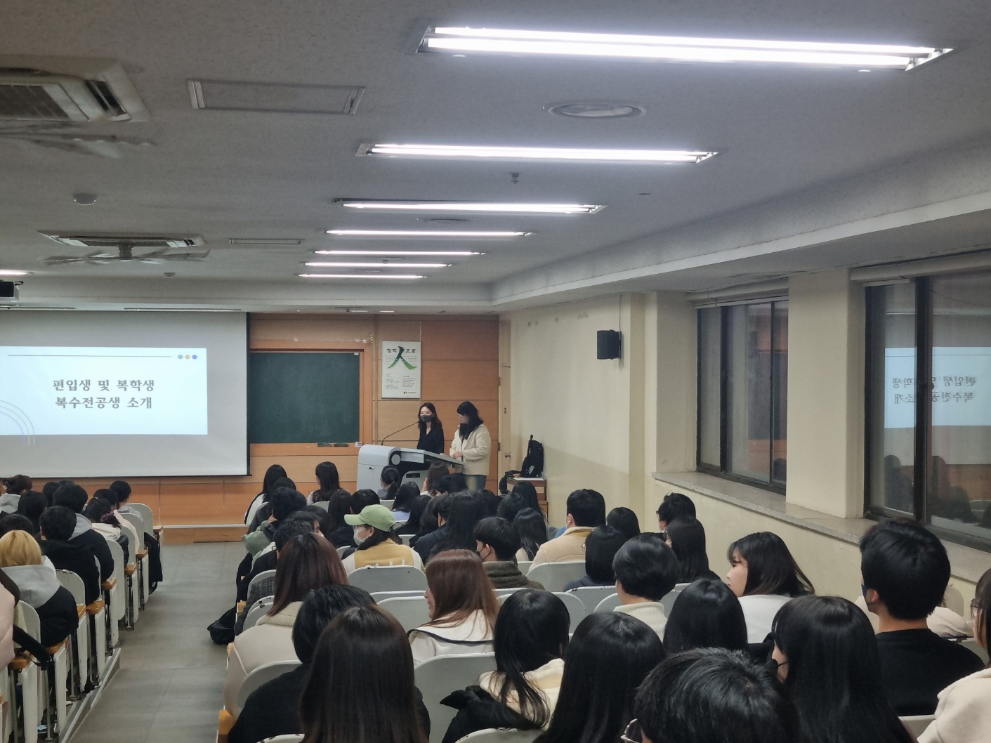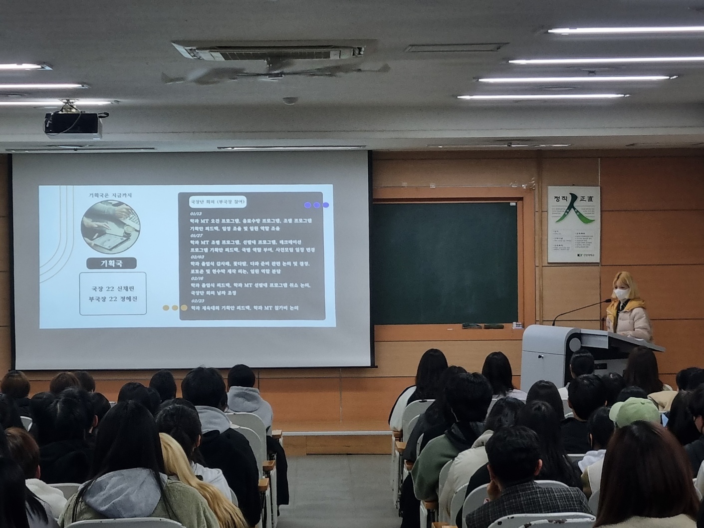 새로운 학기를 맞이하여 학과의 다양한 소식을 전하는 개강총회를 진행했습니다. 송원영 교수님의 따뜻한 인삿말과 신입생, 복학생, 편입생, 복수전공생 분들의 소개를 듣는 시간을 가졌습니다. 학회장단과 학생회, 대의원 소개 그리고 공약이행 사항 및 공지 및 총학생회 비상에서 설명회를 위해 참석으로 개강총회를 끝마쳤습니다. |