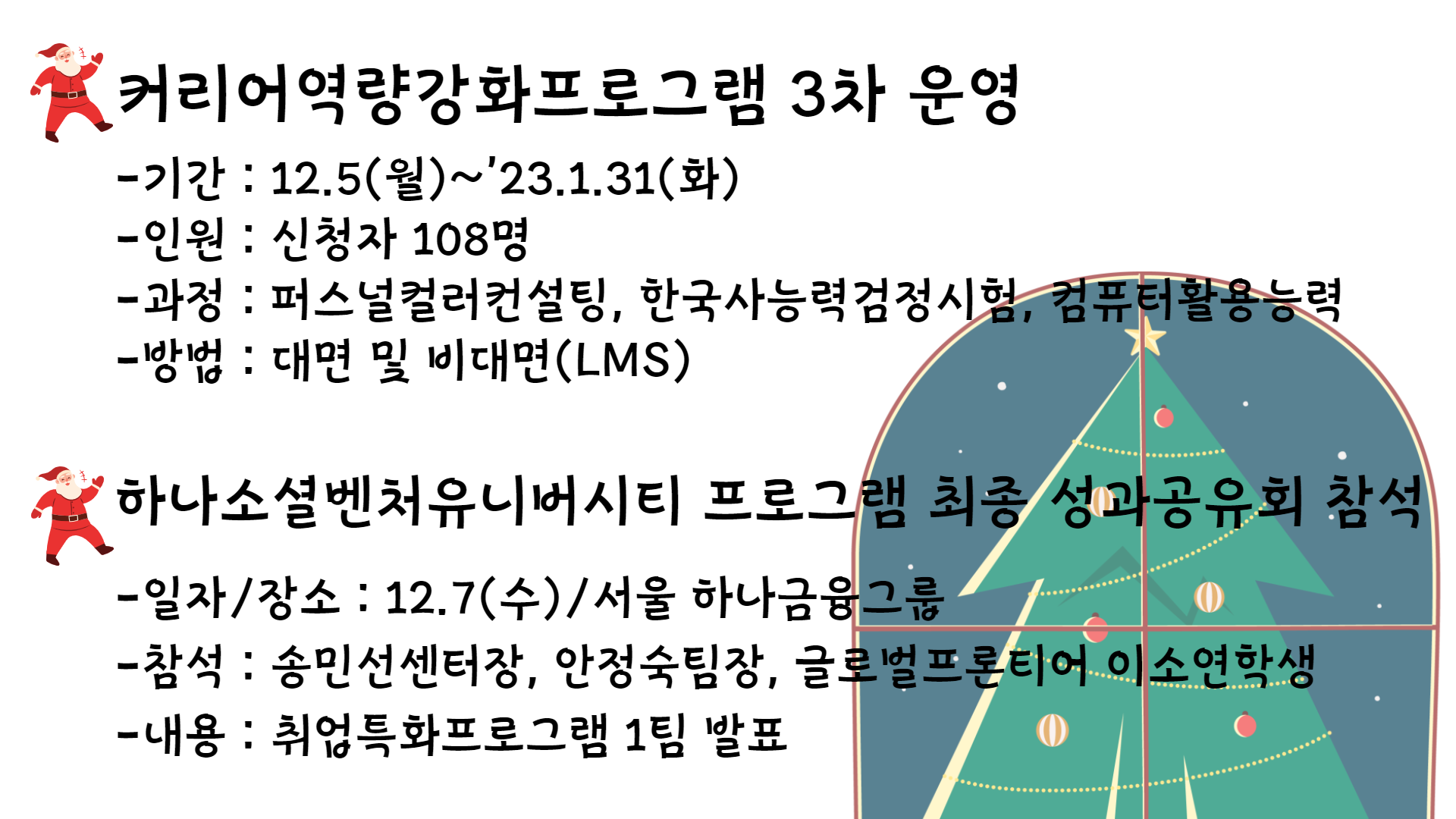 부서명 취창업지원센터 등록일 2022-12-20 조회 3298