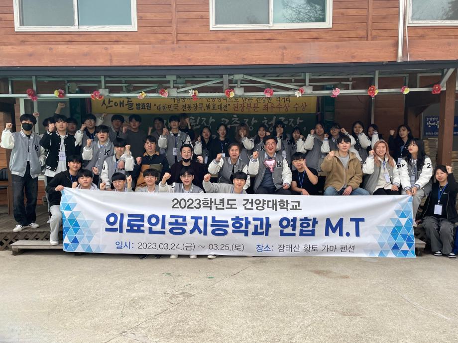 의료인공지능학과 연합 MT - 기간 : 2023.03.24(금) ~ 3.25(토) - 장소 : 장태산 황토가마 팬션 - 참가학년 : 전학년 - 참가인원 : 총 40명(교수 5명, 학생 35명) |