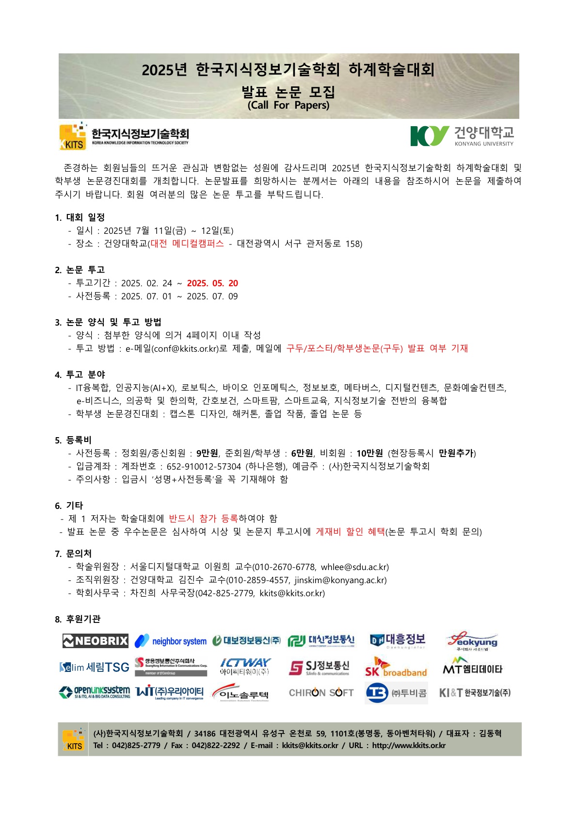 『 2025년 한국지식정보기술학회 하계학술대회 발표논문 모집 』글의 상세내용을 확인하는 표로 제목, 부서명, 등록일, 조회, 첨부, 내용으로 나뉘어 설명합니다.
