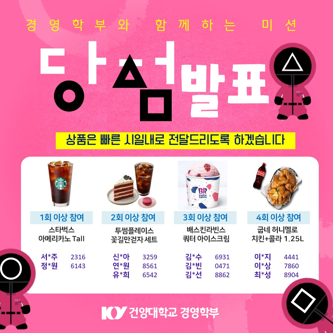 안녕하세요, 건양대학교 경영학부 입니다. 이벤트를 참여해 주신 모든 분들께 감사드립니다