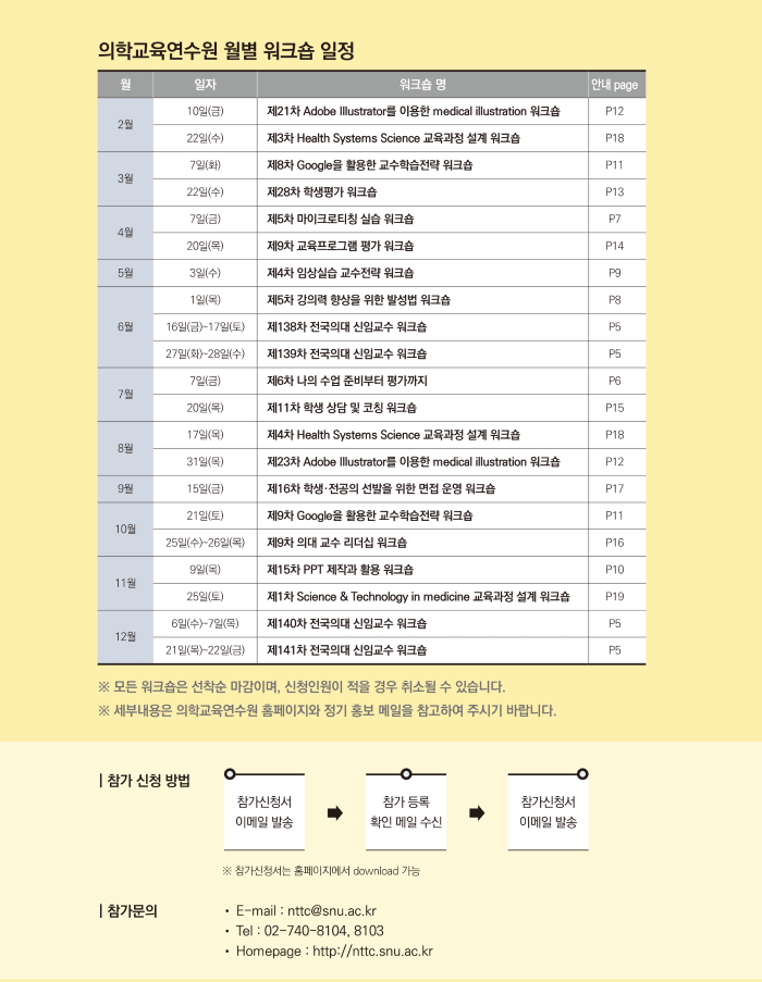 2023 서울의대 의학교육연수원 워크숍 일정을 첨부파일과 같이 안내 드립니다.