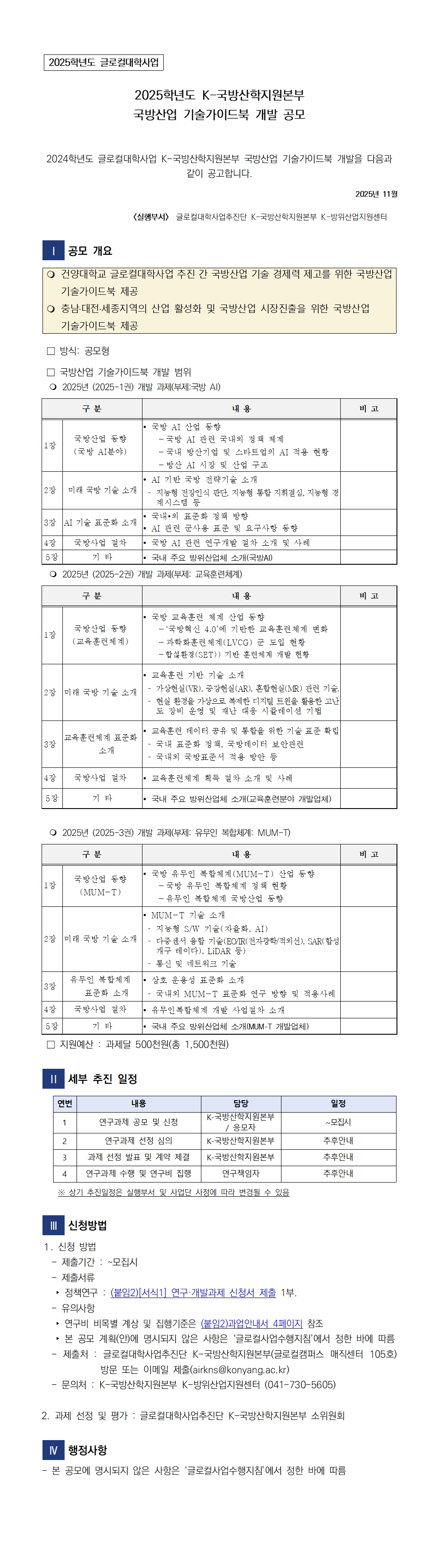 2. 2025학년도 K-국방산학지원본부 국방산업가이드북(총 3권)제작 공고문.hwp